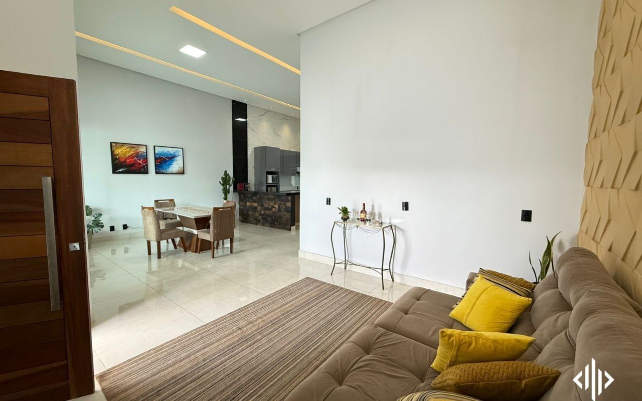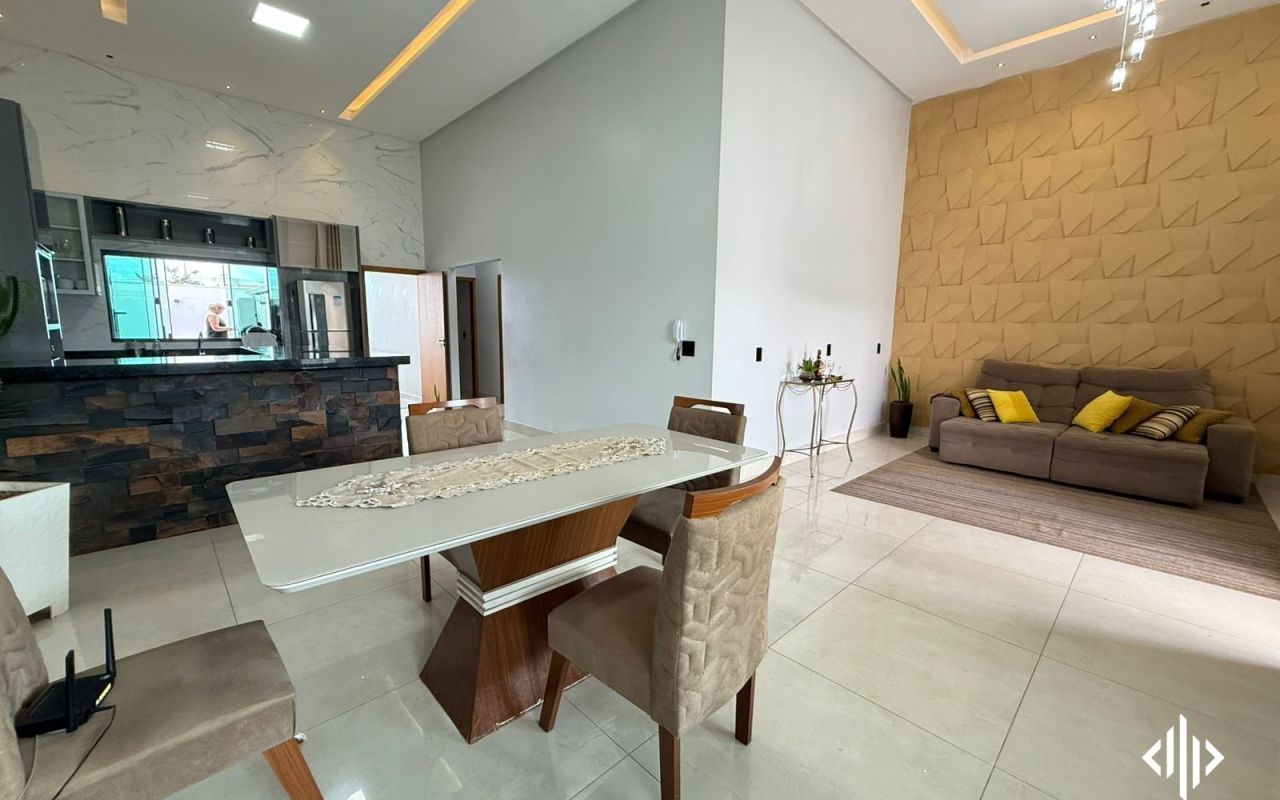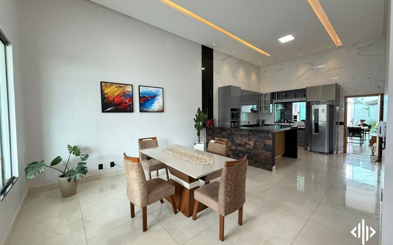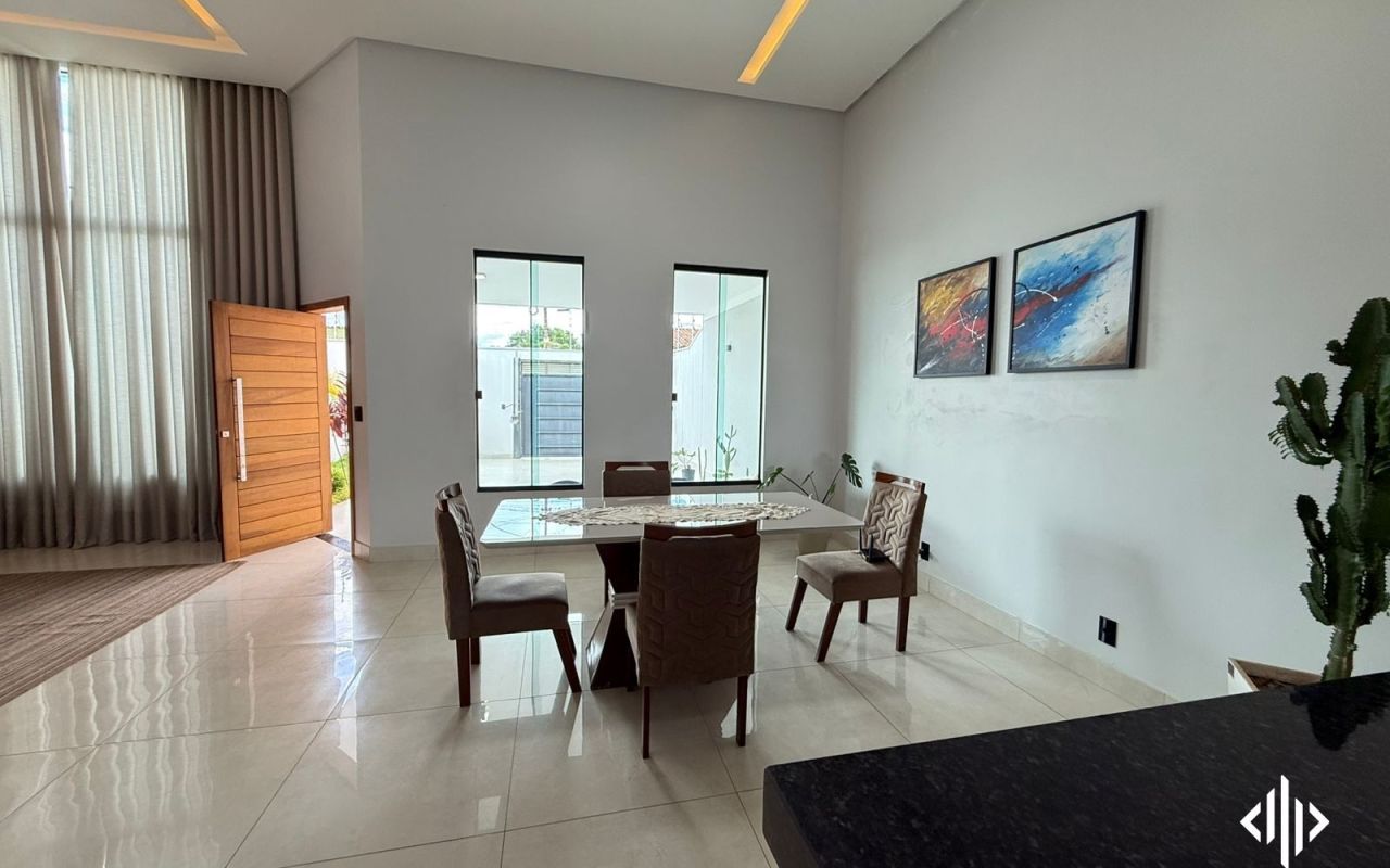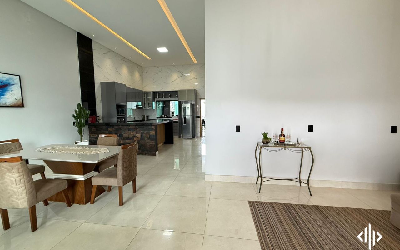 - Sala com pé direto alto, integrada com sala de jantar;