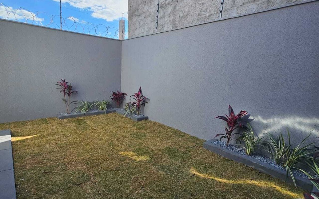 - Fachada e rampa com detalhes em porcelanato nas paredes. - - Jardins na frente com arandelas.