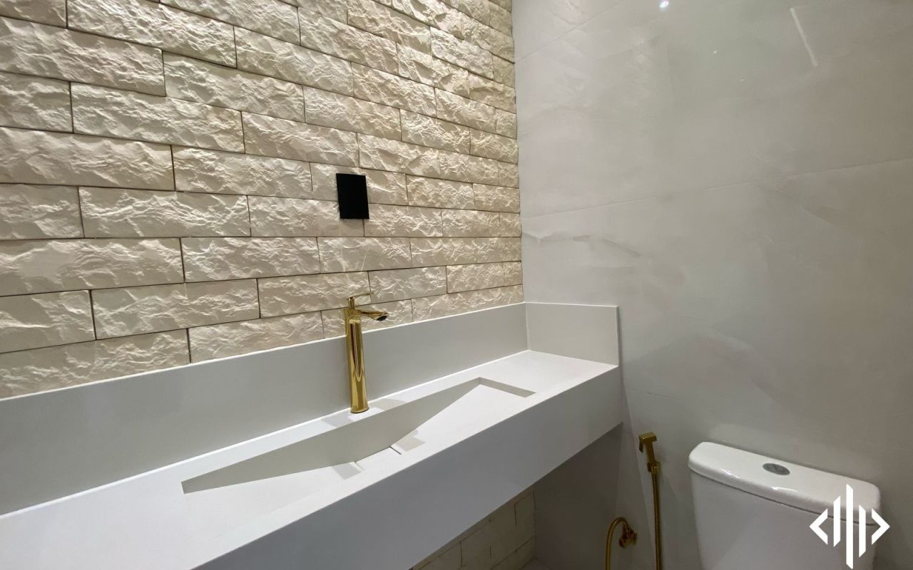 - Bancadas esculpidas das 03 suítes, e lavabo na pedra branco prime;