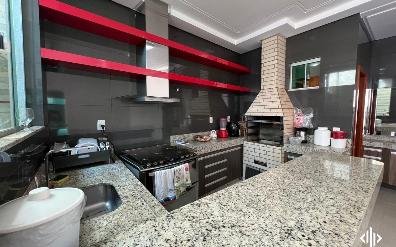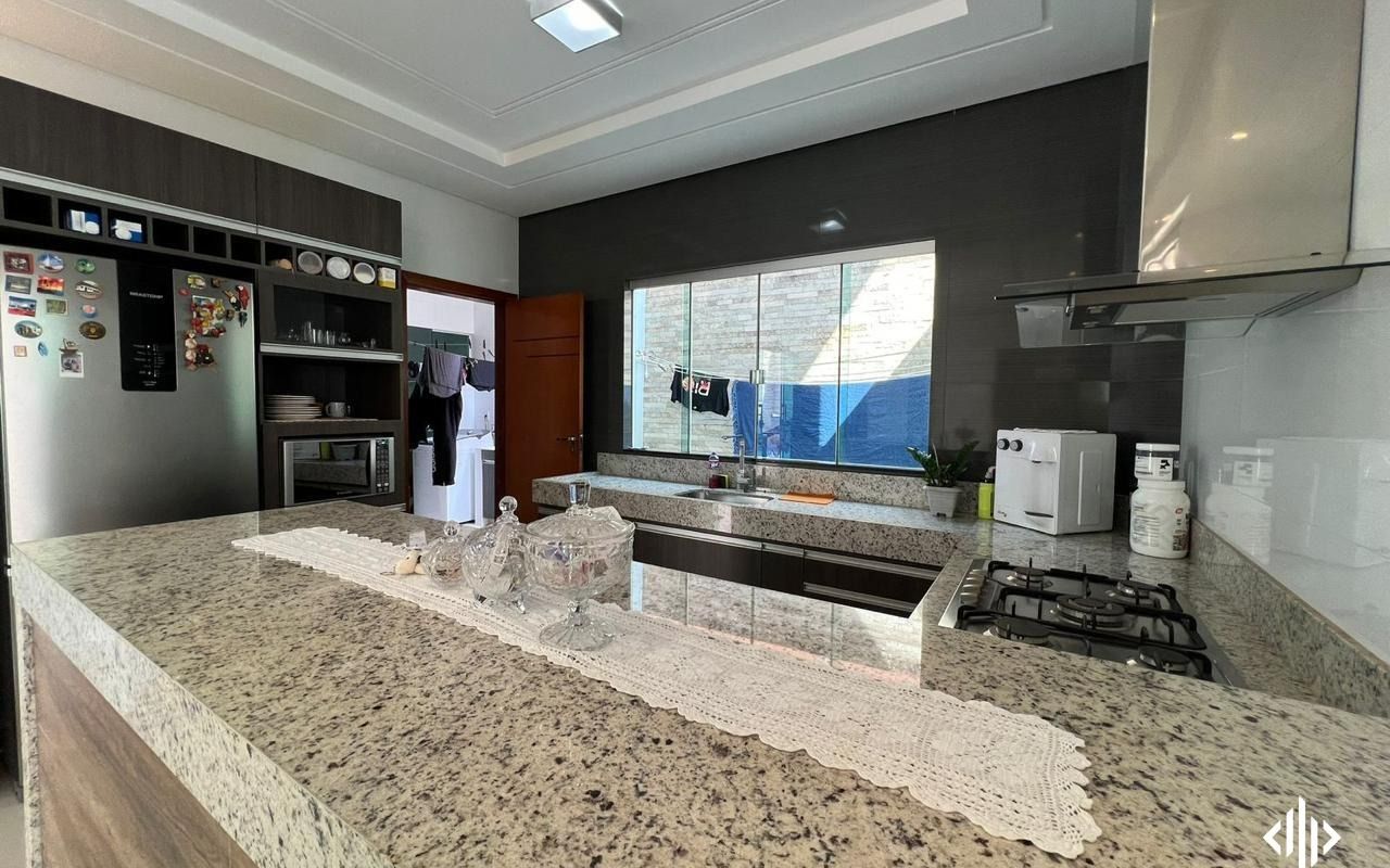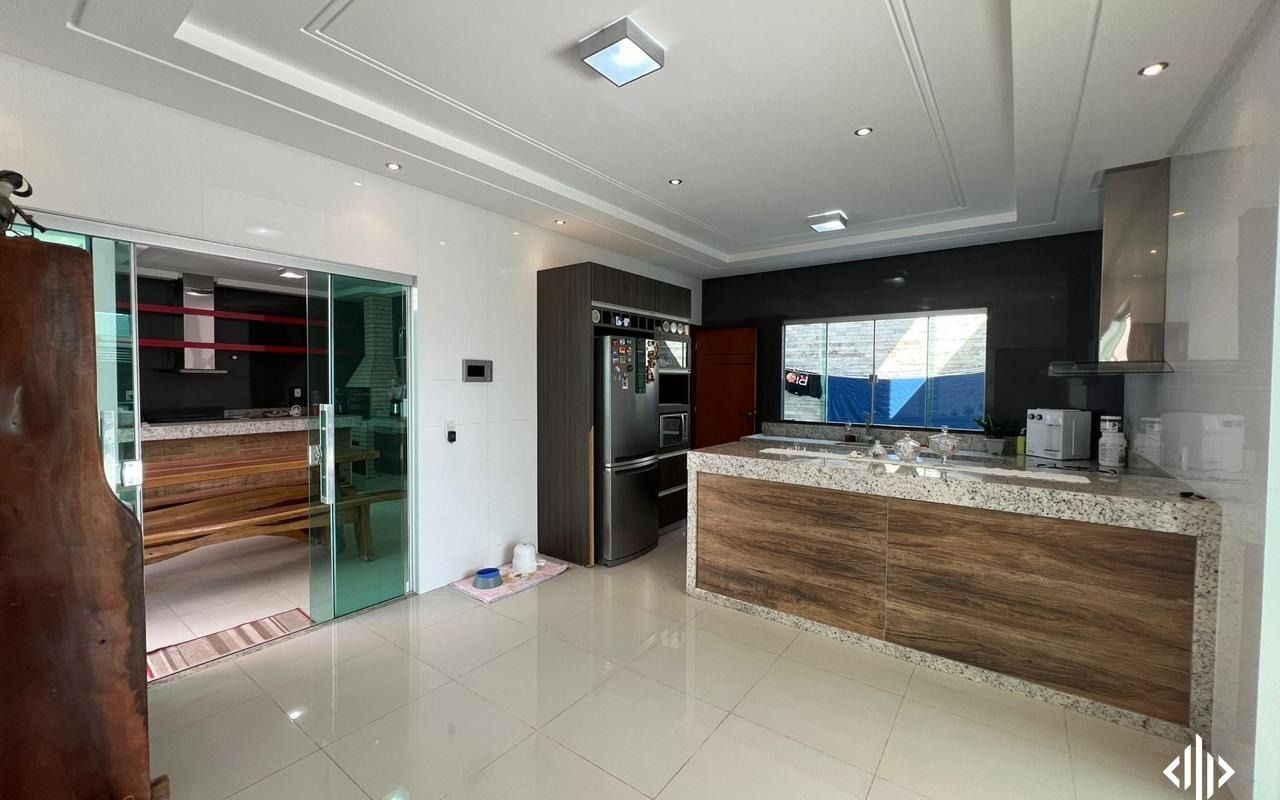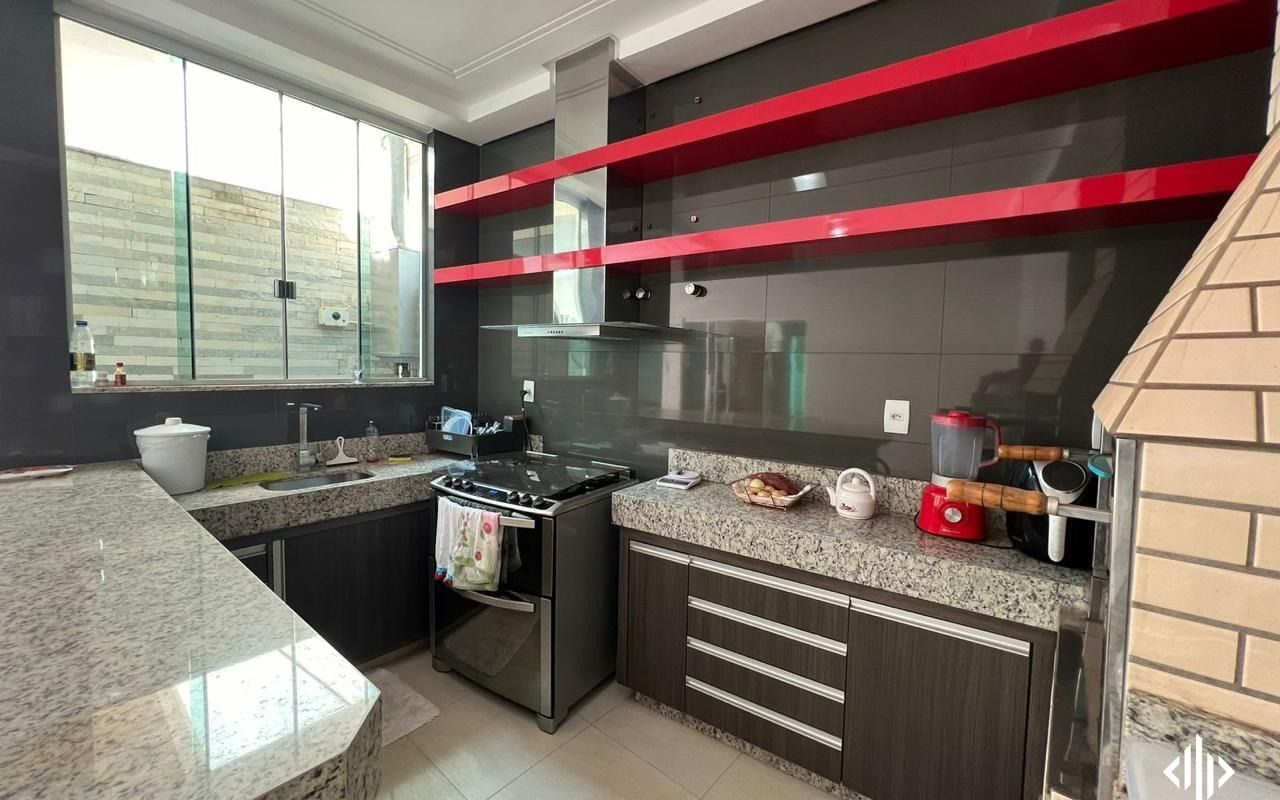 - Cozinha com balcão, coifa e fogão;
