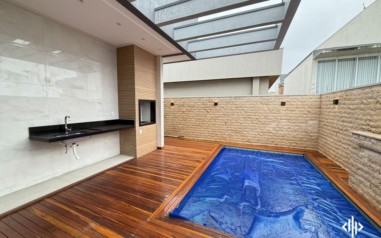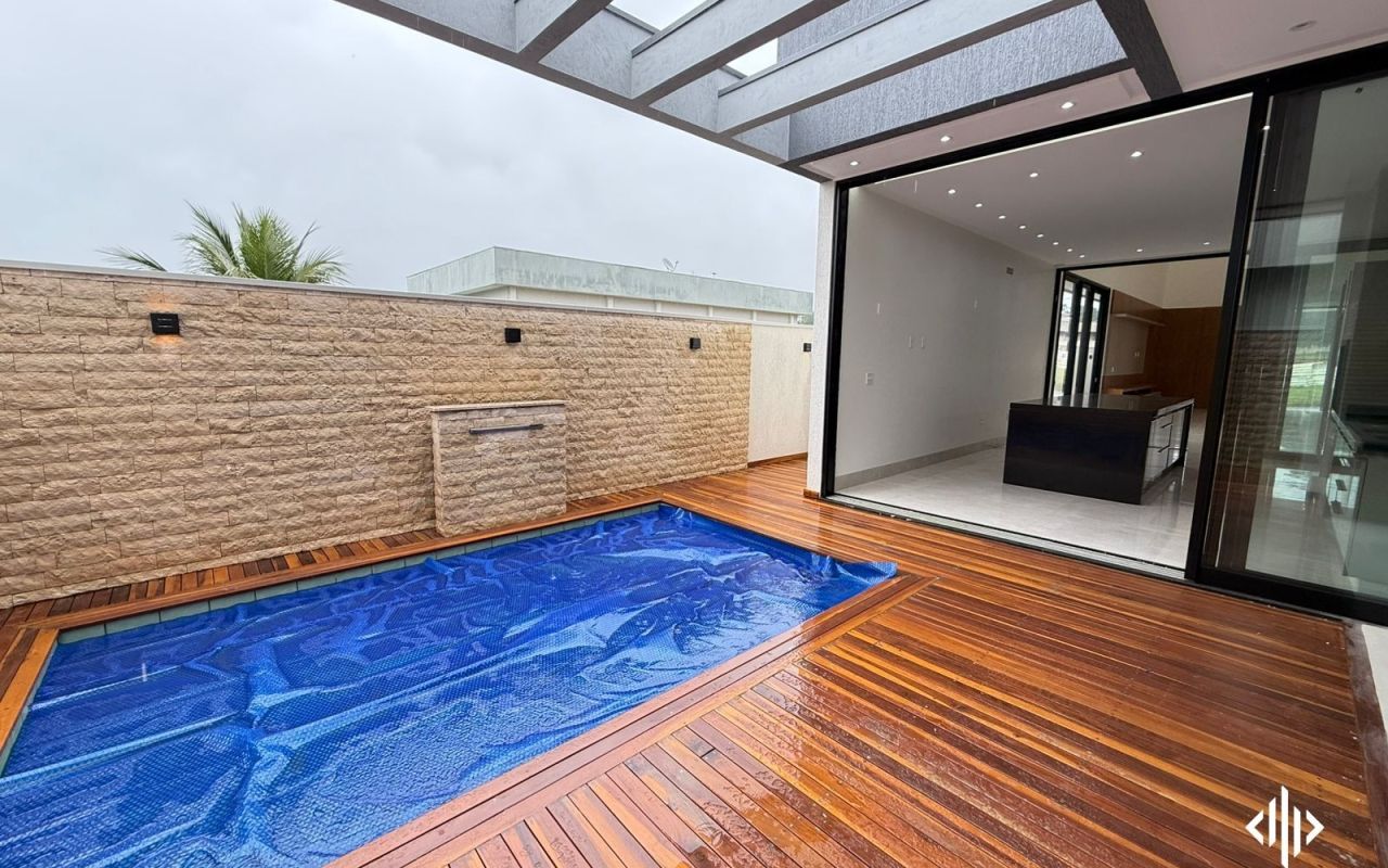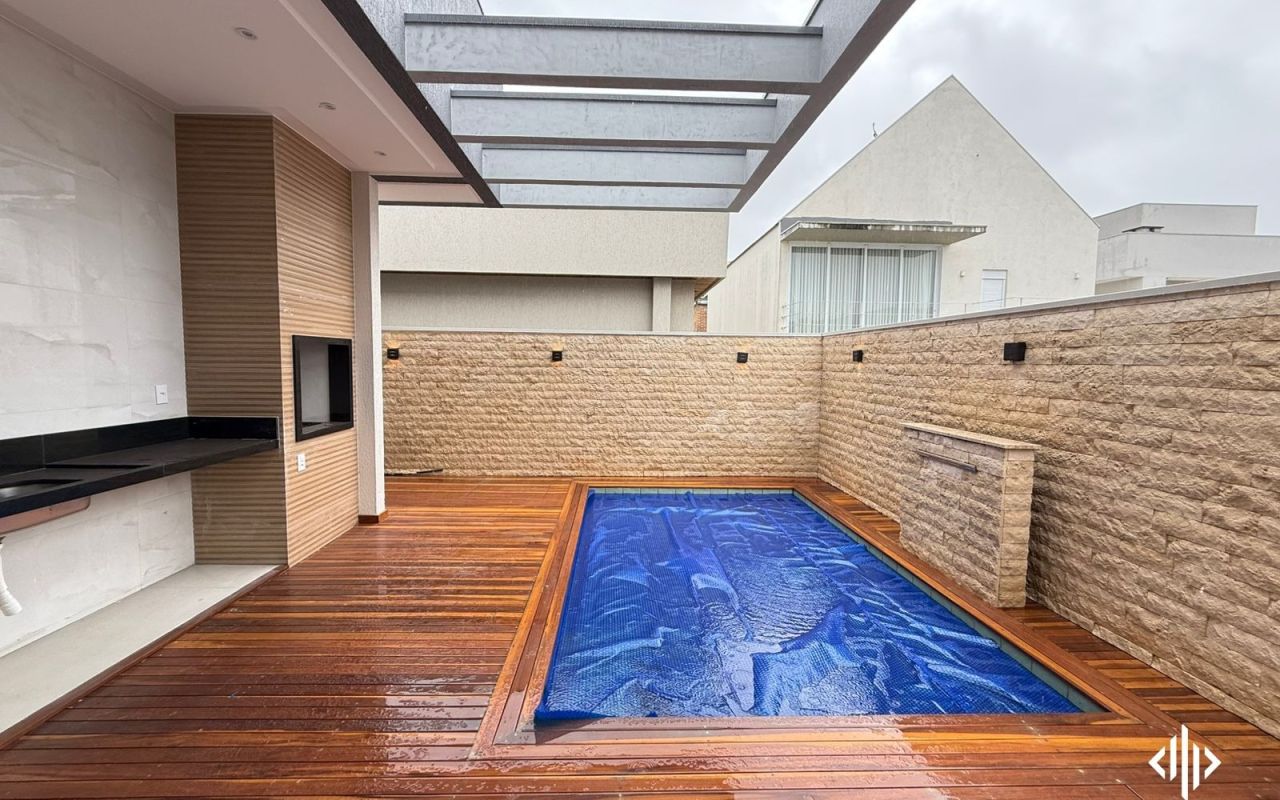 - Piscina com aquecimento, hidromassagem e deck em madeira;