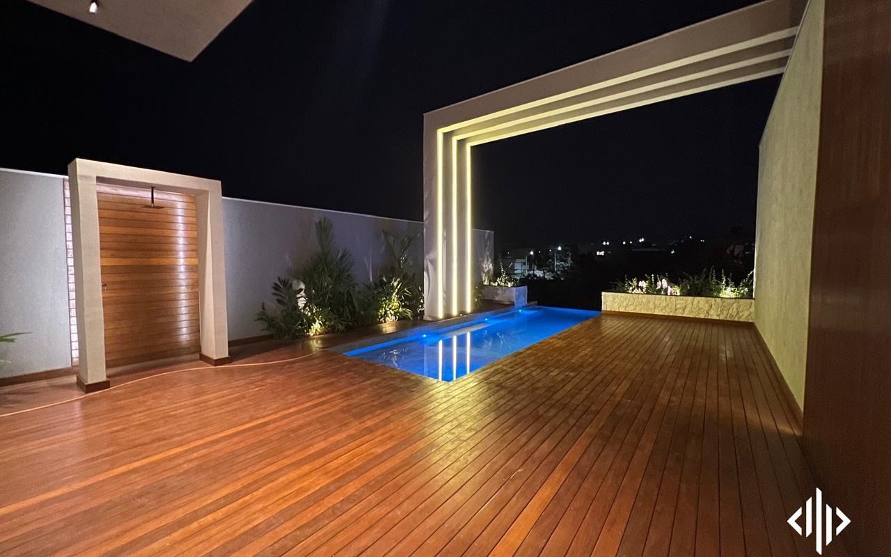 - Ripados de madeira na fachada, varanda gourmet e deck na área de lazer, tudo na madeira cumaru extra (exportação);